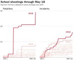 The number of deaths and school shooting incidents through May 18 are each higher this year than at any point since 2000. There have been three times as many deaths in school shootings so far this year than in the second-most deadly year through May 18, 2005.