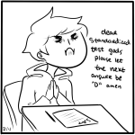 when I was 4 or 5, my mom was a prof at a college and she used to hand me the scantron sheet before she wrote the exam and let me colour whatever lettered bubble i wanted for each answer. if i coloured two by accident, she made an ‘all of the above’ option. one time she gave me it and i coloured the ‘a’ bubble for each of the 130 questions except for the second last one and she just went with it
