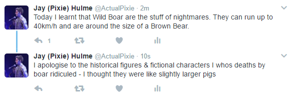 Forever laffin’ at people who don’t understand how enormous, terrifying, and tenacious wild boar are.