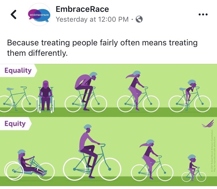 I remember reading somewhere once “we should be speaking of equity instead of equality” and that is a principle that applies here me thinks