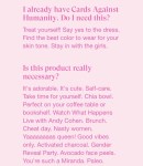 Cards Against Humanty just released their “For Her” pack, parodying products geared towards women and also giving proceeds to Emily’s List, which helps more women get elected to government.