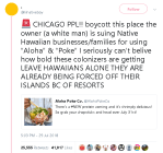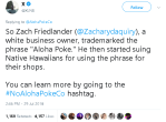 If you’d like to see the C&D order he sent to a Hawaiian business owner (spelling their name wrong) for deigning to name his Hawai’i based poke restaurant ‘Aloha Poke’, here it is.
