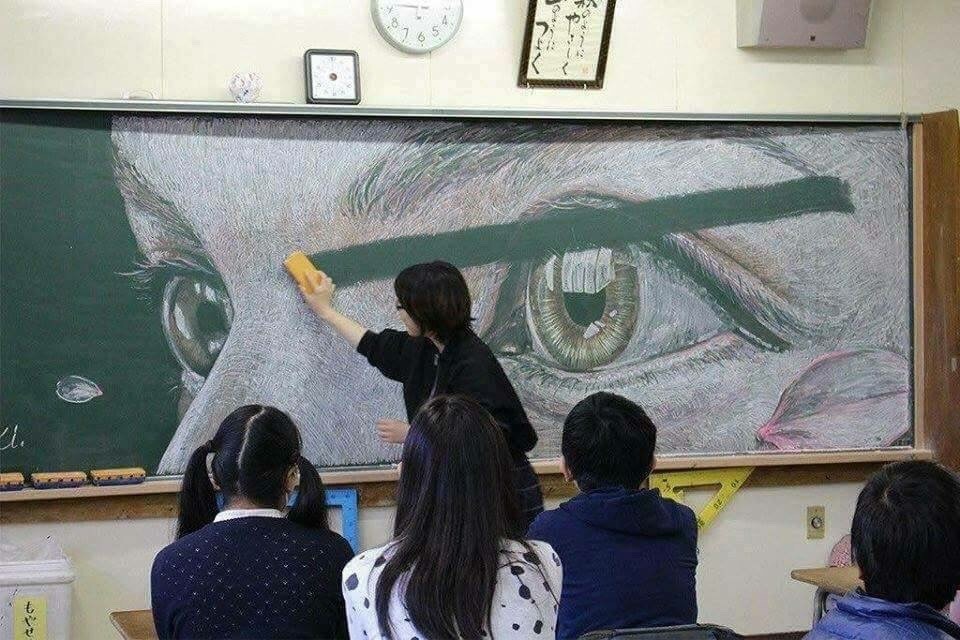 A lot of people already condemn and calling this teacher a bitch/monster on the comment/reblog, not knowing the whole story. It was actually the TEACHER who drew the beautiful art on the blackboard, and the teacher is a HE, he’s an accomplished artist who was trying to teach his students about the beauty of art and however changing it is. He will draw any arts by request from his students, the students will take some pictures, and then he erases it from the board, and make new ones. He’s not a monster. He’s actually trying to spark the students’ interest in art. Funny how a simple pic without context enrages people – and the people refusing to look beyond the story.