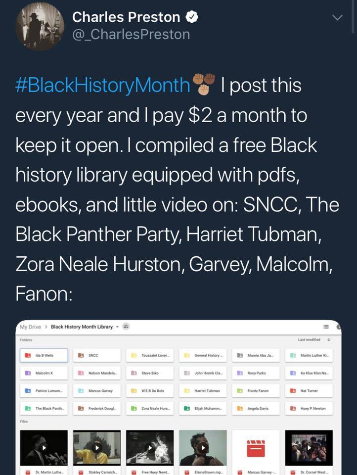 picklesandtwigs Uncategorized August 18, 2018December 4, 2018 1 Minute awholenotha: welcometoyouredoom: Free Black History Library Please keep boosting this, free knowledge is so important people. Share this: Share on X (Opens in new window) X Share on Facebook (Opens in new window) Facebook Like Loading... Related Published by picklesandtwigs View all posts by picklesandtwigs Published August 18, 2018December 4, 2018
