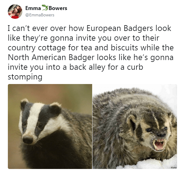 As funny as this is, as someone who has met a European badger, all I can say is at least the American one has the decency not to hide the fact that it will tear your kidneys out via your toes if you so much as look at it funny.