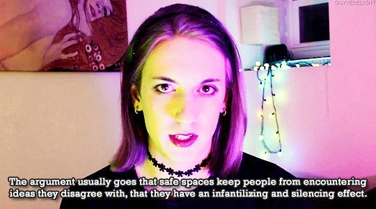 The argument usually goes that safe spaces keep people from encountering ideas they disagree with, that they have an infantilizing and silencing effect. picklesandtwigs August 19, 2018December 4, 2018 Published by picklesandtwigs View all posts by picklesandtwigs Published August 19, 2018December 4, 2018