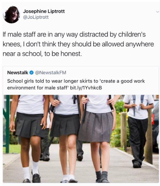 Let’s be real. If little girls’ knees, shoulders, and clavicles are a problem for male teachers, you don’t have a dress code issue. You have a pedophile issue.