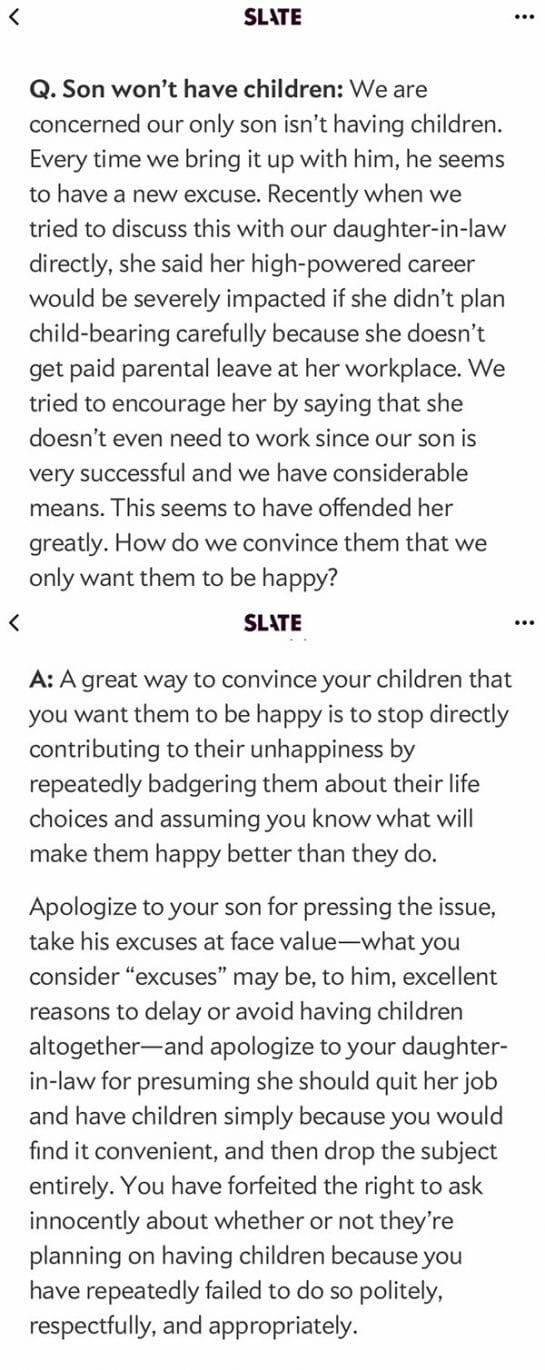 Oh and to everybody in the notes saying they’d be upset if their children refused to pass on their genetic lineage: Die mad about it.