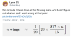 picklesandtwigs Uncategorized November 16, 2018December 4, 2018 1 Minute anarchist-bakery: buzzfeed: This Restaurant Has The Wildest Wing Pricing Structure And People Are Doing Math To Try To Figure It Out THEY FUCKING PLOTTED IT IN MATLAB I’M CRYING Share this: Share on X (Opens in new window) X Share on Facebook (Opens in new window) Facebook Like Loading... Related Published by picklesandtwigs View all posts by picklesandtwigs Published November 16, 2018December 4, 2018