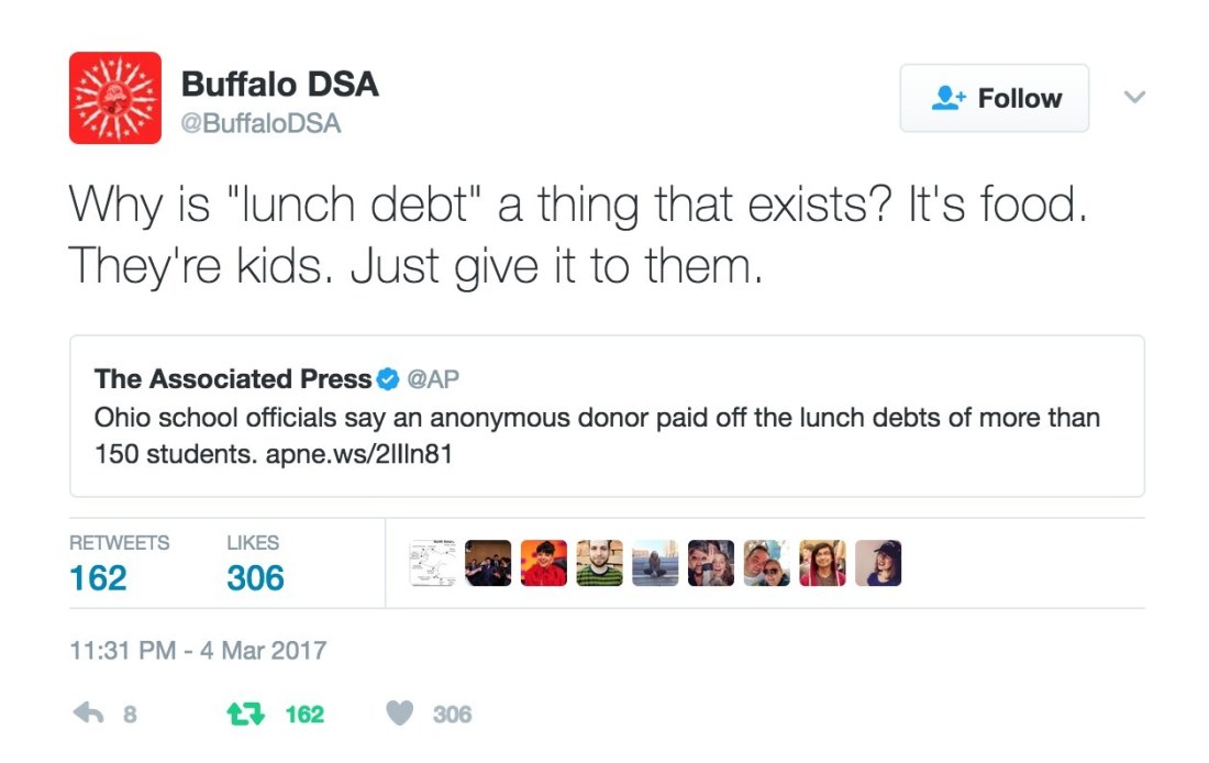 More and more large urban school districts are switching to universal free lunch and eliminating even the mechanism for “lunch debt”. They found it was cheaper and more effective to just use Federal Free Lunch money (through a specific grant) to give everyone free lunch rather than fund the bureaucratic steps of having parents register for free lunch.