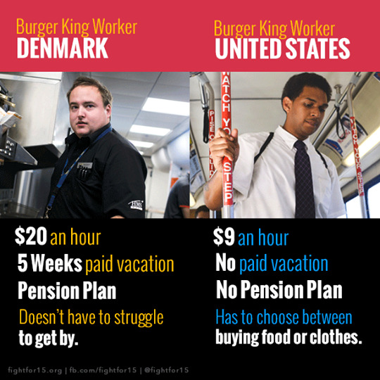 This isn’t because Burger King is nicer in Denmark. It’s the law, and the US is actually the only so-called “developed” country that doesn’t mandate jobs provide a minimum amount of paid vacation, sick leave, or both.