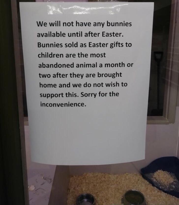 This pet store wont sell Bunnies until after Easter (xpost r/pics)