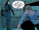 Yeah sure… I’ll let a couple of avengers who just told me everybody is out to kill them into my house. Sounds like a good time. It’s also a bit telling that Sam knows exactly where his suit is. Ten bucks says he’s actually tried to steal it before but couldn’t quite manage it on his own.