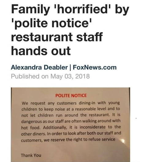 TL;DR DON’T LET YOUR TINY CHILDREN RUN AROUND IN A RESTAURANT. IT’S NOT A PLAYGROUND. IT’S DANGEROUS FOR BOTH THE STAFF, THE OTHER CUSTOMERS, AND THE ACTUAL CHILDREN.